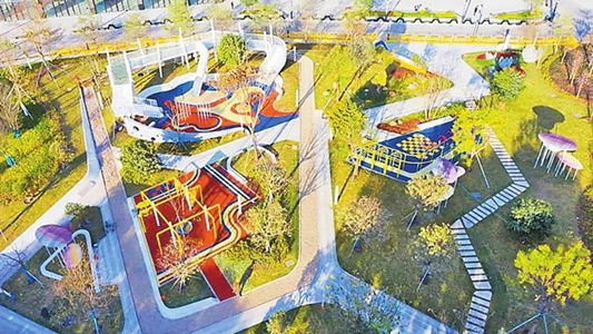 Eight new parks in Longhua District have been recently built, with roads paved mainly with granite and permeable concrete and walking lanes made w....