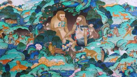 Thangka paintings created by Luozang Dongzhou from Qinghai Province are on display at the Futian Cultural Hall..