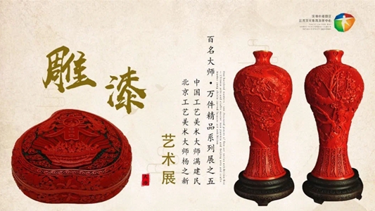 Carved lacquer craftworks made by Man Jianmin from Beijing are on display..