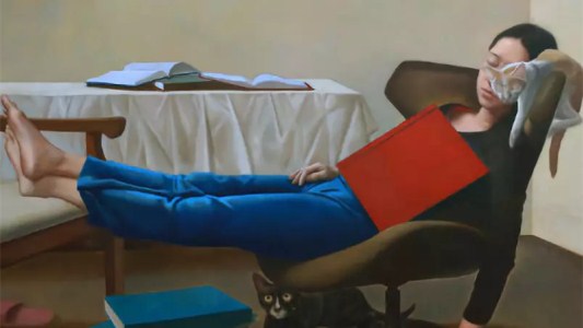 More than 30 oil paintings by five contemporary Chinese artists are being shown at the Artron Art Center in Nanshan District..