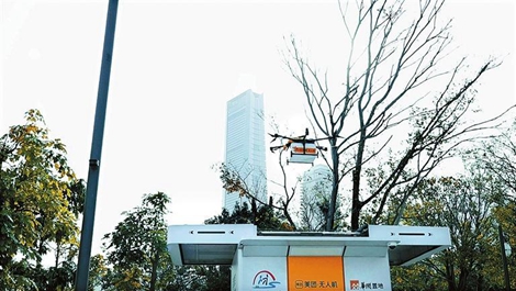A drone prepares to deliver food into a Meituan pick-up booth in the Shenzhen Talent Park in Nanshan District.Several food delivery drones prepare for takeoff from the "drone airport" in the Coastal City shopping mall, which is located about one kilometer away from the Shenzhen Talent Park.Editor's Note:Since the annual "two sessions" concluded earlier this March, the phrase "new quality productive forces