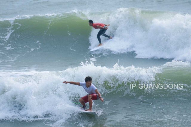 In the surfing competition, athletes ride the waves with grace and momentum.