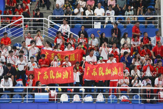 Teammates of the Guangdong team cheered loudly for their competing partners, and their roars, together with the audience's cheers, echoed throughout the stadium.