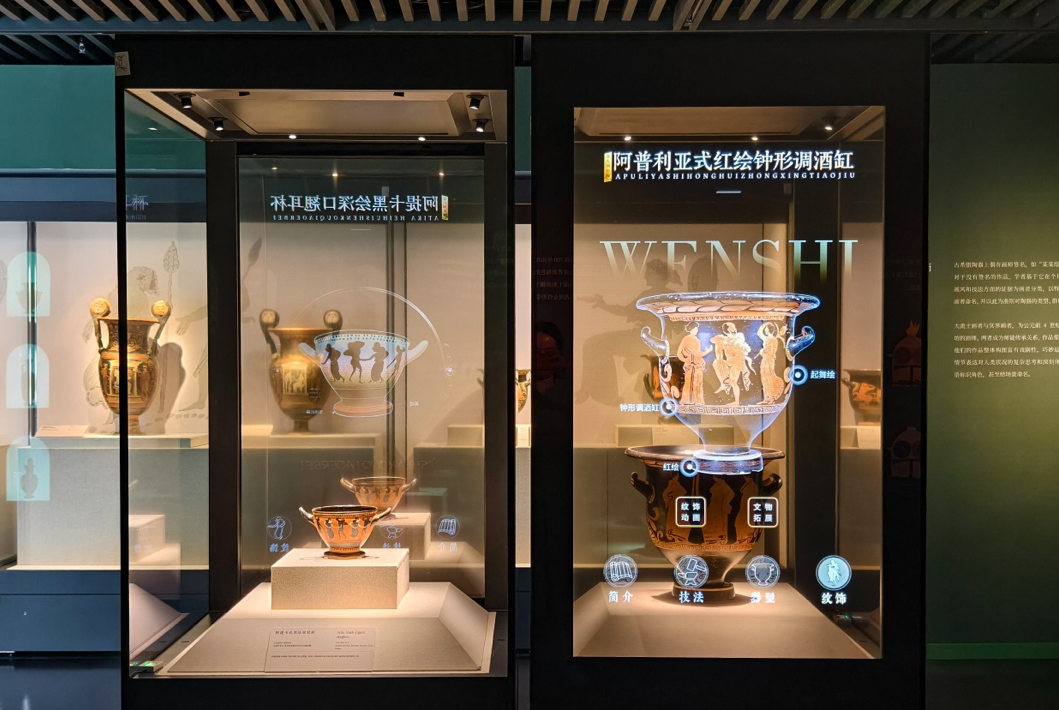 Interactive screens invite visitors to explore the exquisite craftsmanship behind ancient red-figure and black-figure pottery styles. AI-generated illustrations add a fresh and engaging dimension to the stories of the ancient Greek gods. In the museum lobby, an immersive video showcases animated pottery patterns, blending the charm of ancient civilization with modern technology.