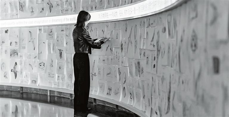 A visitor admires hand-drawn sketches by Es Devlin at the exhibition. Photos courtesy of the organizer