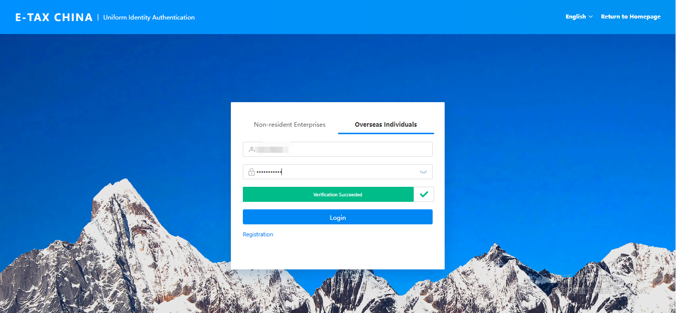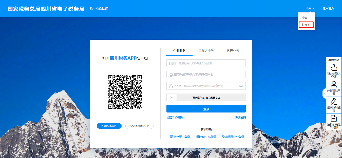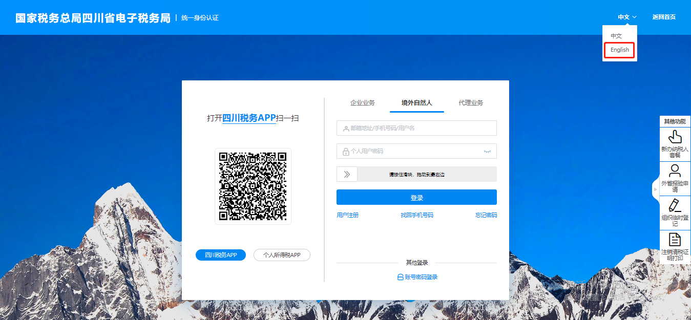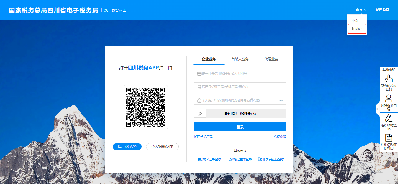 Step 1: Open E-tax China, and click on the top right button to switch to English;