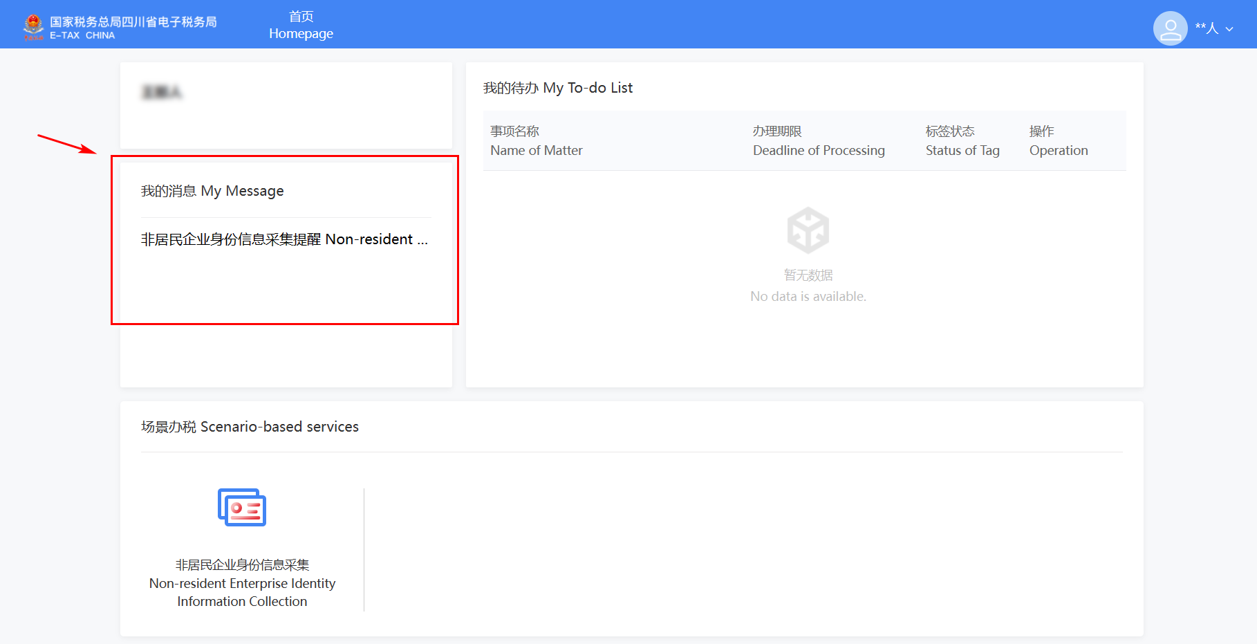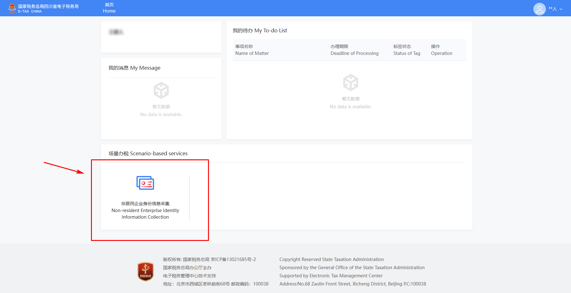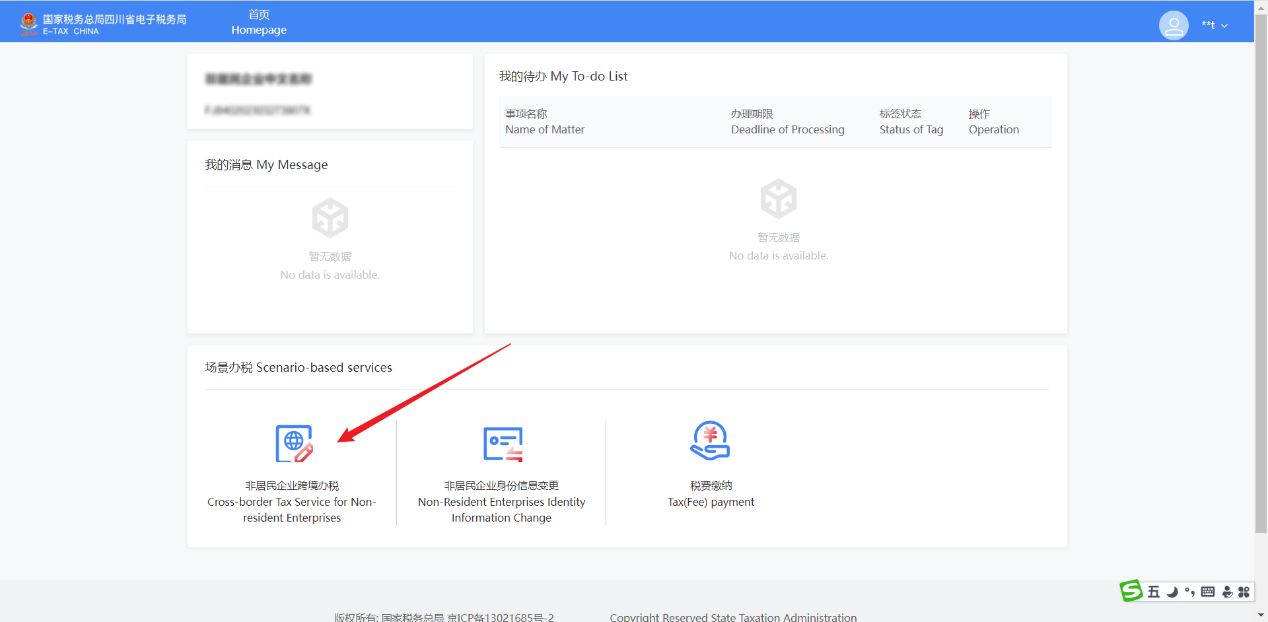 Step 3: After logging in, please click on “Cross-border Tax Service for Non-resident Enterprises” on the homepage.