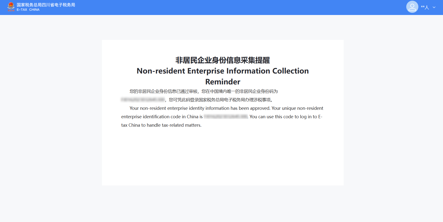 Step 7: Check the result and get the Identification Code of Non-resident Enterprise through Email or internal mail of E-Tax China after the review is completed.