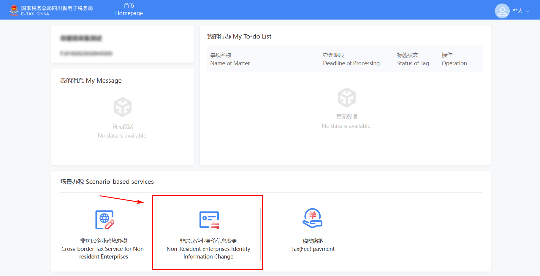 Step 2: After logging in, please click on “Non-resident Enterprise Information Change” on the homepage.
