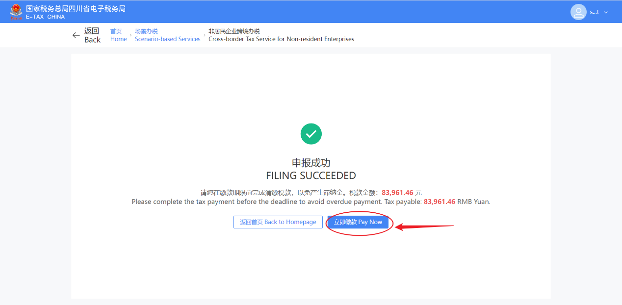 Step 11: After filing succeeded, click on“Pay Now” to enter the payment page.
