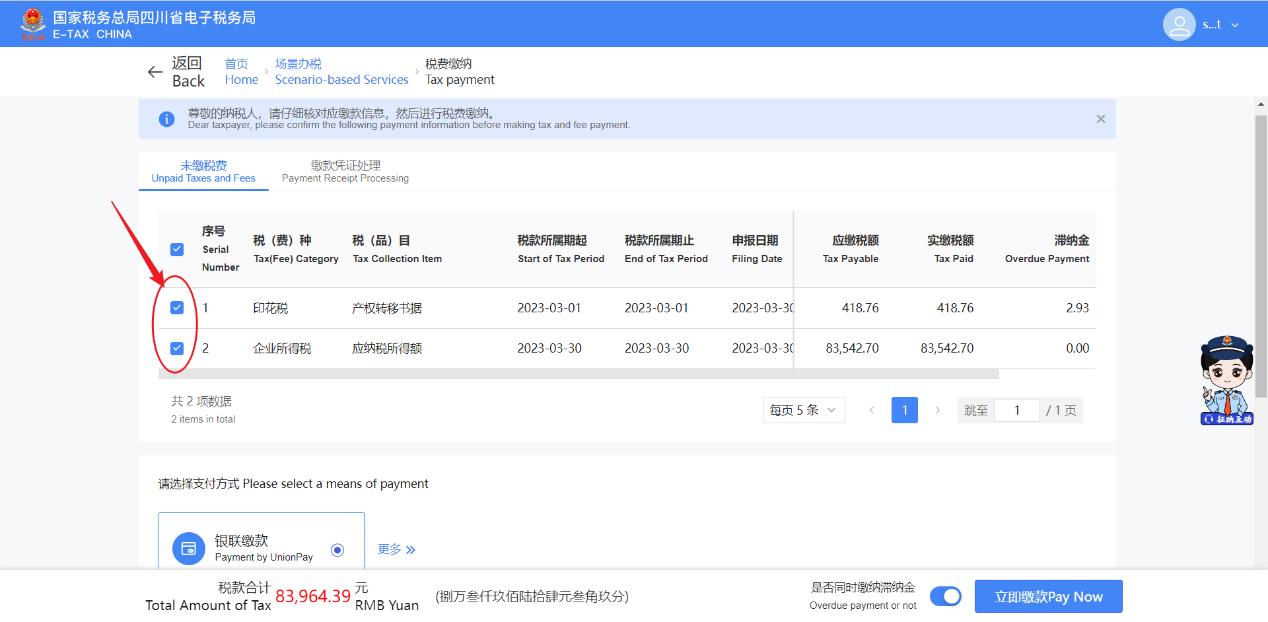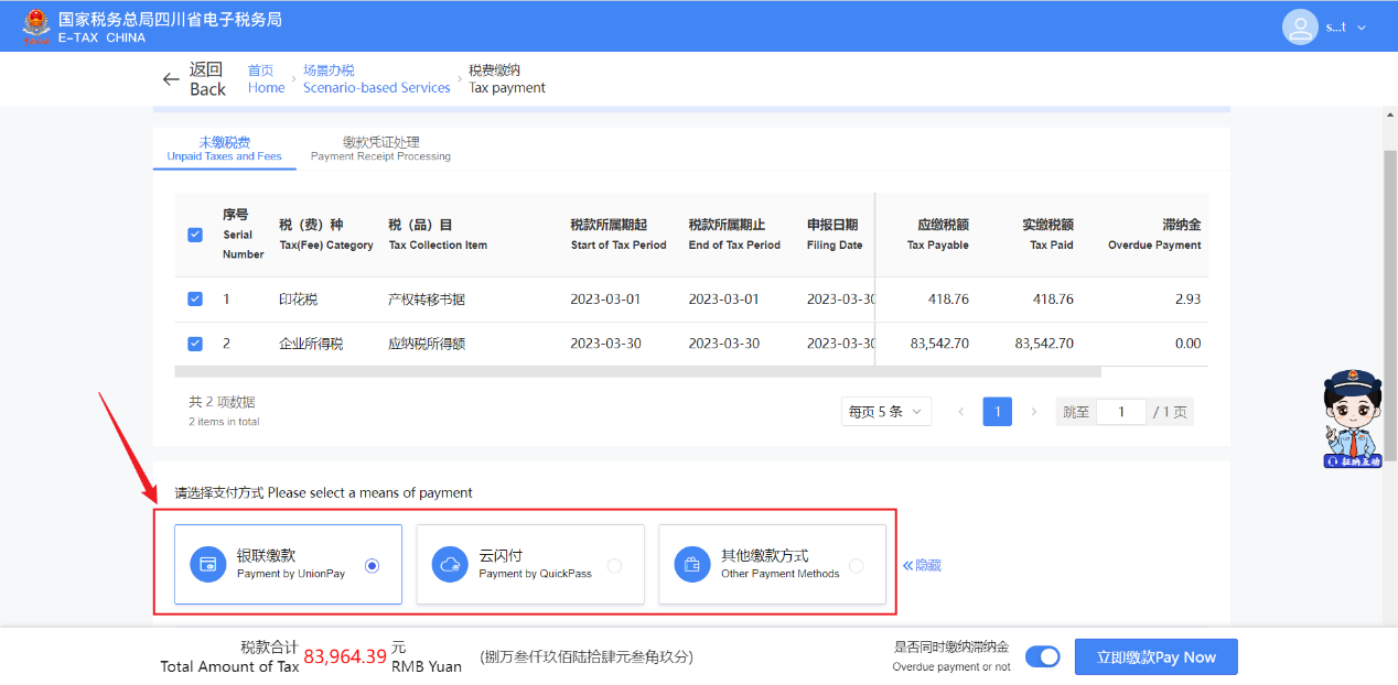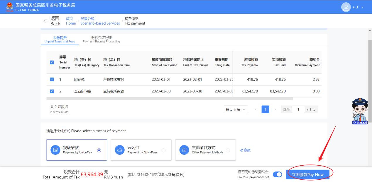 Step 1: Click on “Pay Now,” and enter the “Tax payment” page.