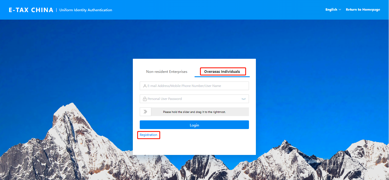 Step 3: Click on "Overseas Individuals" to see the "Registration" portal;