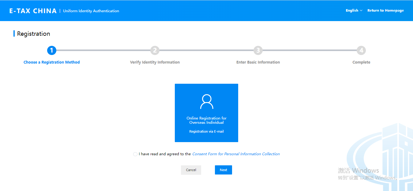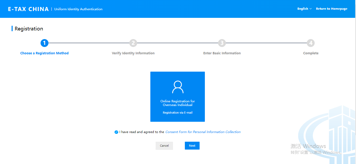 Step 5: Check "I have read and agreed to the Consent Form for Personal Information Collection," and click on “Next” to enter the identity information verification page;