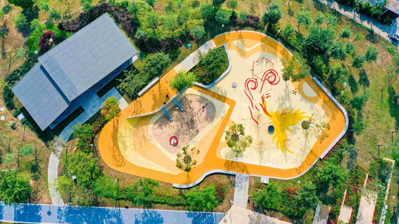 (4)The park also has a viewing platform at the peak, which was built without posing a threat to the original litchi forest. It has a stone hiking path and a resting platform.