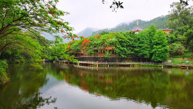 The featured attractions of Yuanshan Scenic Area include the Yuanshan Main Peak at 599 meters above sea level, E'gongji at 618 meters (the highest peak of Longgang District), and the two valleys, Dakang Stream Valley and Laohugou Valley.