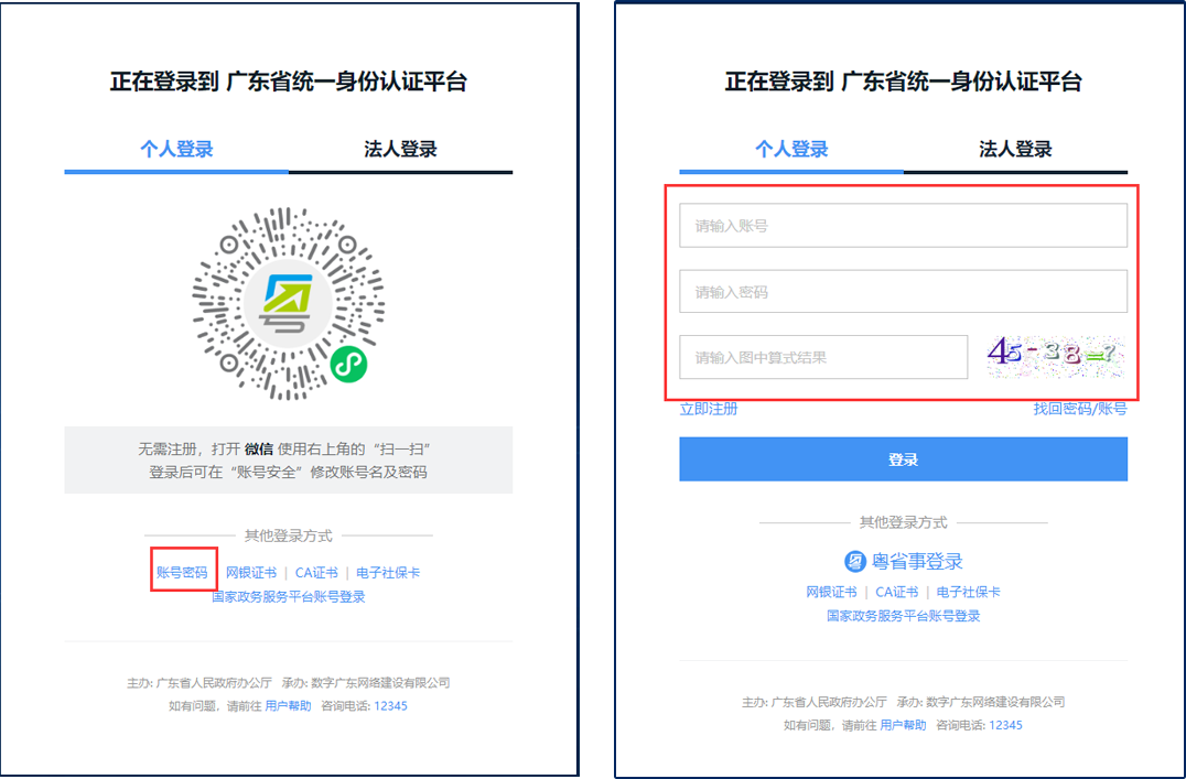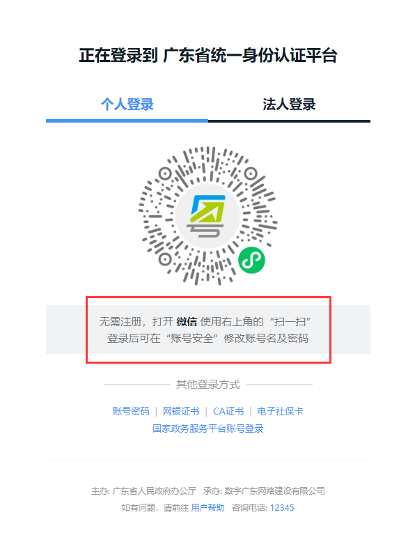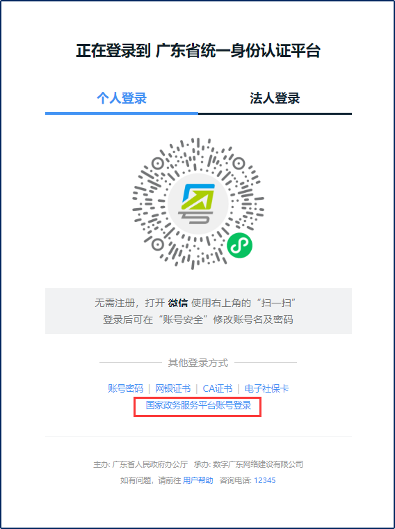 Login through the Guangdong Province Unified Identity Authentication Platform.