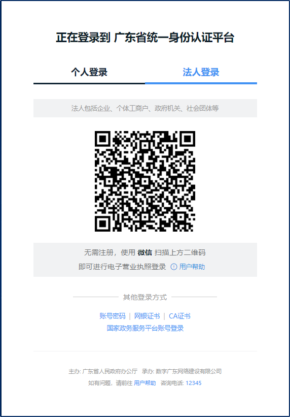 Available for legal persons. If haven’t obtained the electronic business license, you need to scan the QR code to obtain the license.