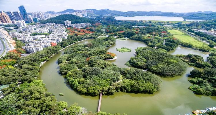 罗湖区 东湖公园位于深圳市区东部,东连梧桐山,西临爱国路,南接深沙公路和沿河北路,北靠深圳水库主坝,占地面积193.21公顷,是深圳市建立最早的综合性市政公园。