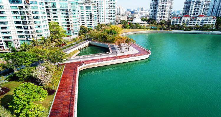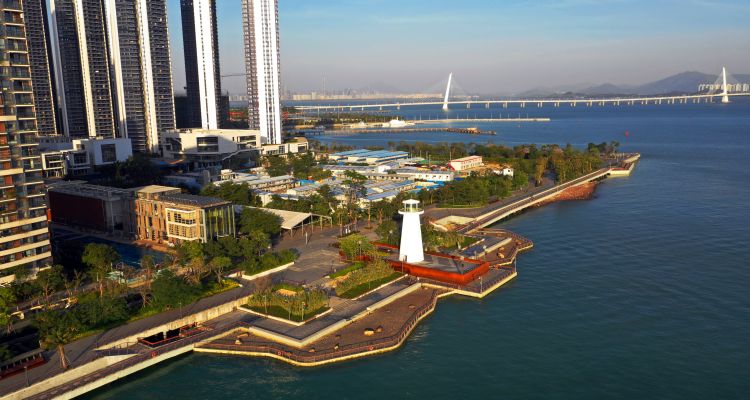 南山区 深圳湾滨海休闲带西段,从中心河入海口至南海酒店,全长6.6公里,总用地面积约30万平方米,于2017年7月3日建成开放。公园沿线由蓝花楹广场、海监广场、灯塔广场、渔海栈道、女娲广场等11个景观节点串联,被誉为最美都市海岸线,与东段完美连接,一条长达16.2公里的“城市飘带”蜿蜒在深圳湾畔。