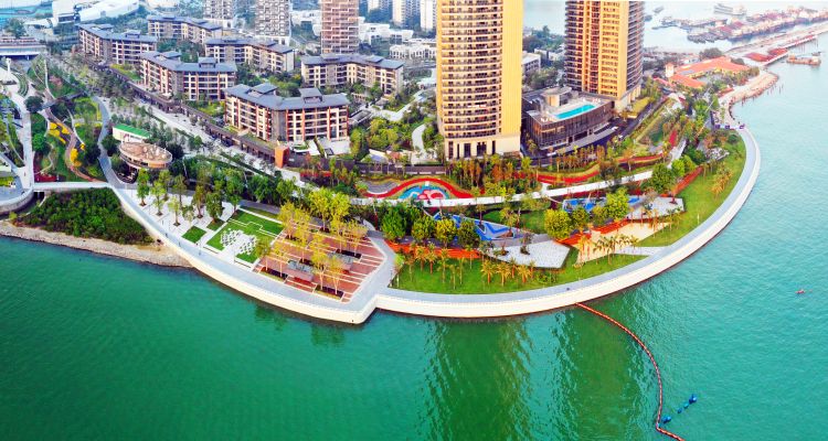 E段错落有致的“生态长廊”,该段为海湾形态,毗邻蛇口山,结合小品建筑和步行系统设置,使之成为山体与海湾交接的重要生态廊道。