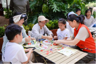 小菜地花园将农事教学与环保实践相结合,介绍了“处暑收黍”的传统农俗和咖啡渣堆肥技术,推广资源循环利用理念。百草园中开展的“闻香识药”互动环节,让孩子们亲近中草药文化。旧物改造活动中,大家一起彩绘废旧轮胎,践行“无废”环保理念。植物拓印手工体验则锻炼了孩子们的动手能力,也加深对自然之美的感受。