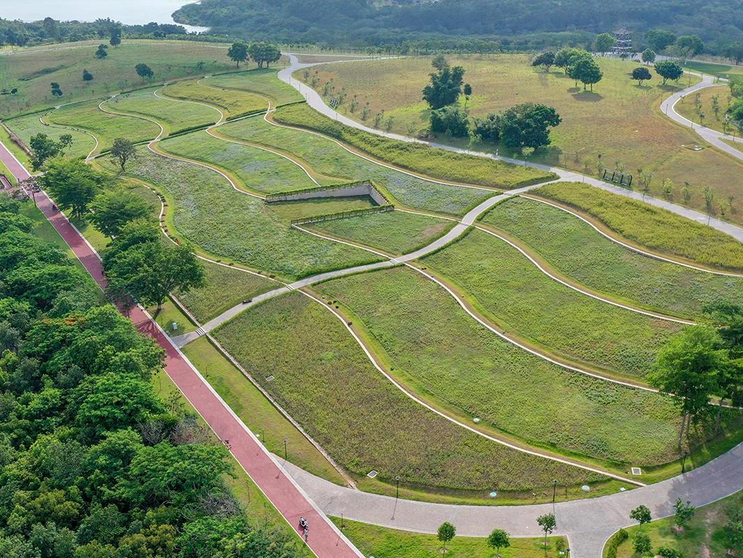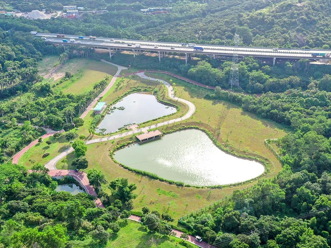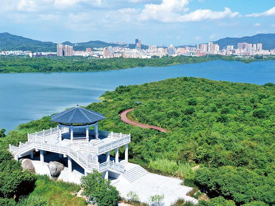宝安区石岩湖郊野公园北临石岩湖路与星湖路、南临洲石路、东临松白路、西接洲石路支线,占地共150.38459万平方米,于2020年1月正式对外开放。由石岩环湖碧道将“俯仰之间”“陌上花”“青草排”三个主题公园沿线串联组成,形成回环、完整的生态绿色廊道,以自然、野趣、健康为主题,将城市生活引入山水美景之中,还市民健身、休憩、亲水的绿色空间。