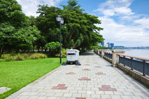 1T酷哇独角兽系列扫地机器人,具备低噪、高效作业等特点,可用于清洗广场、人行道、非机动车道等城市公共场景。