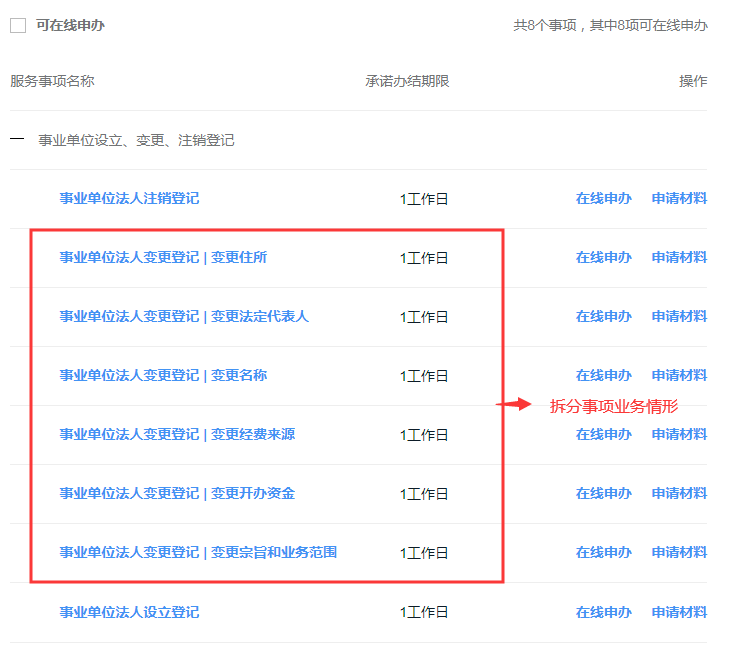 针对行政审批过程中环节多、时限长等问题,不断简化事业单位法人登记程序,最大限度简环节、减要件、优流程,对申请、受理、审核、核准、办结、送达等环节进行优化整合,细化分解办理事项的业务情形,做到“最小颗粒度”拆分。依托省政务服务事项管理系统、省事业单位登记管理系统,推动事项网上全流程办理,从办事单位填报各项申请书、上传材料、到审批部门受理、审核、退回或核准均可“一网通办”。在送达环节提供快递服务,寄送查验材料和法人证书,打破现场办公的局限性,实现“不见面审批”,做到“信息多跑路、群众少跑腿”。