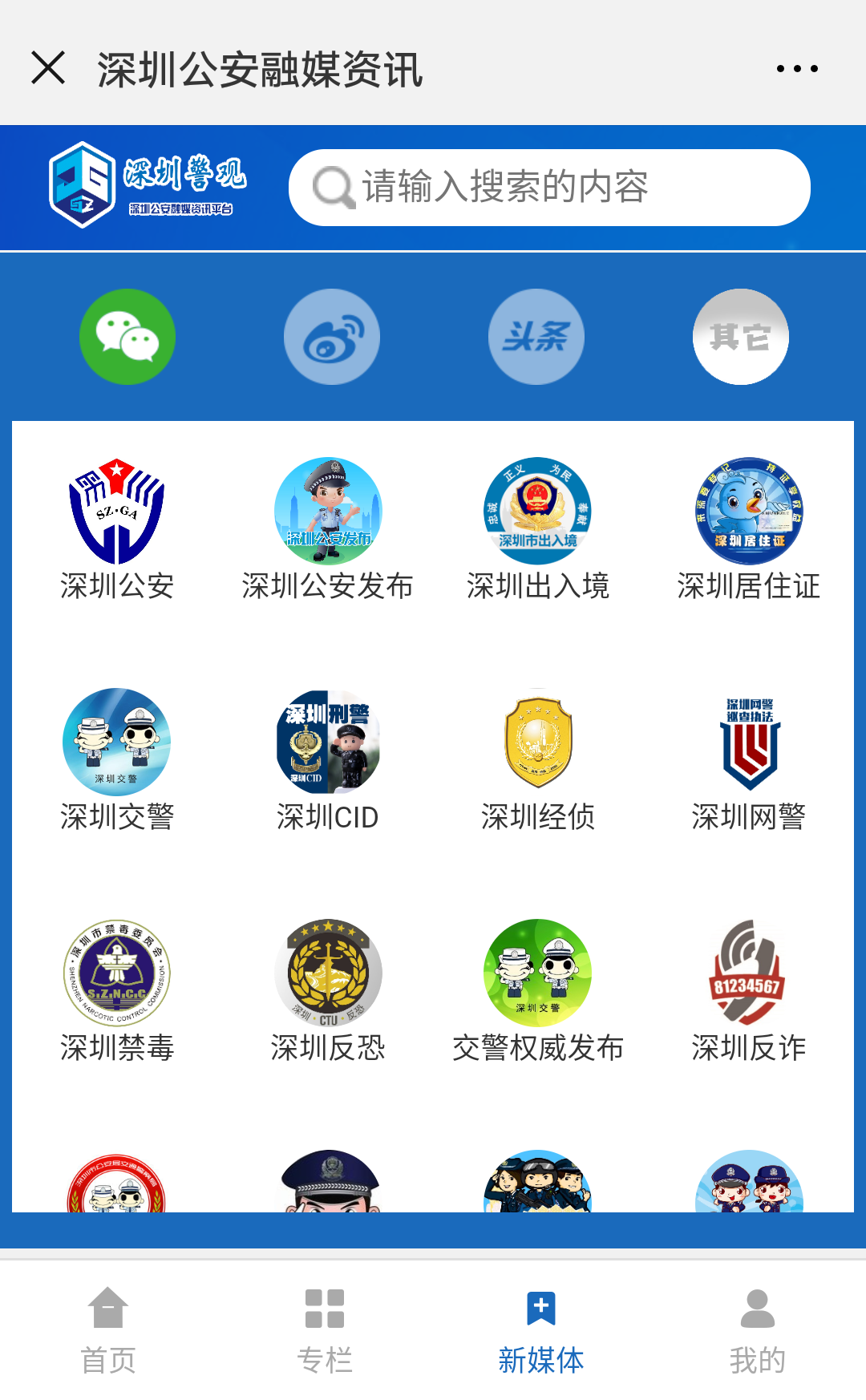 资源整合更加系统规范。“深圳警观”2.0将深圳公安新媒体矩阵中的123个新媒体账号全部纳入其中,用户只要登入平台点击新媒体矩阵,就可以看到所有分局、警种的官方微博、微信以及在今日头条、南方+等平台的公安号,真可谓一平台在手,阅览深圳公安全局新闻无忧。