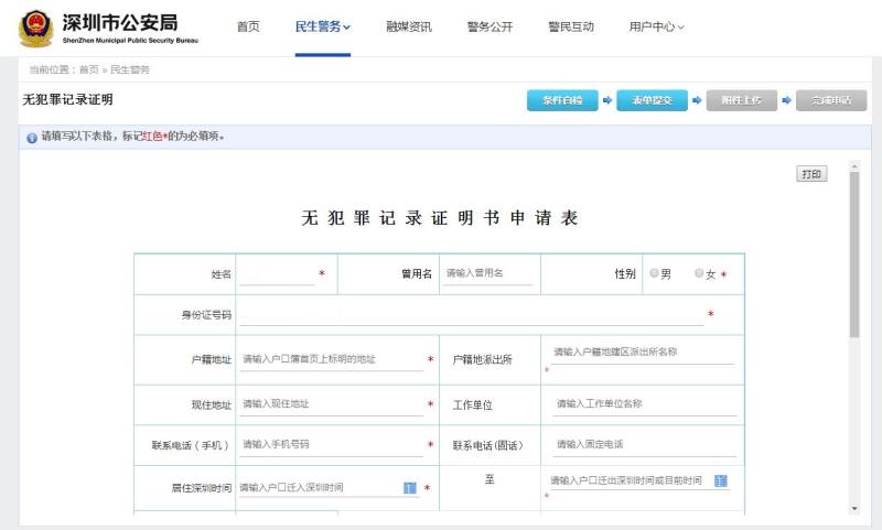 今后,深圳市民足不出户即可办理无犯罪记录证明。市公安局推出无犯罪记录证明全流程网上办理服务,深圳户籍居民在民生警务深微平台上可在线办理无犯罪记录证明业务,选择邮递服务,即可足不出户即可办理该项业务。