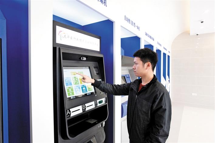 市民在民治行政服务大厅24小时自助便民服务区办理业务