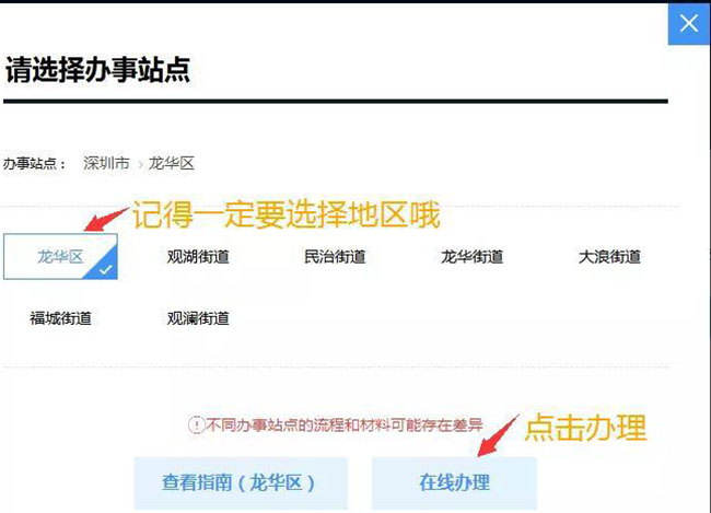 三、按指引选择办理地区,记住,办理情形一定要勾选“秒批”