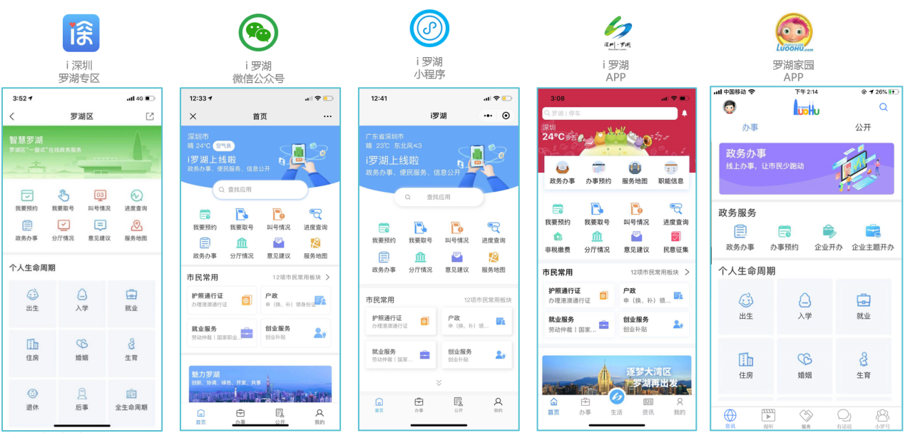 一是建设统一标准基础平台,发布《“i 罗湖”接入标准规范》,针对不同应用服务形态,制定应用、服务、数据、界面集成标准规范,让各类服务应用集成更快捷、稳定、安全。二是通过大数据和一体化服务平台对区政府各部门业务流程和资源进行系统再造和整合利用,构建政务及公共服务中台,实现政府服务能力沉淀与快速部署。三是“一次开发,多端适配”,打造包含APP、公众号、小程序等多渠道一体化的移动政务服务体系。