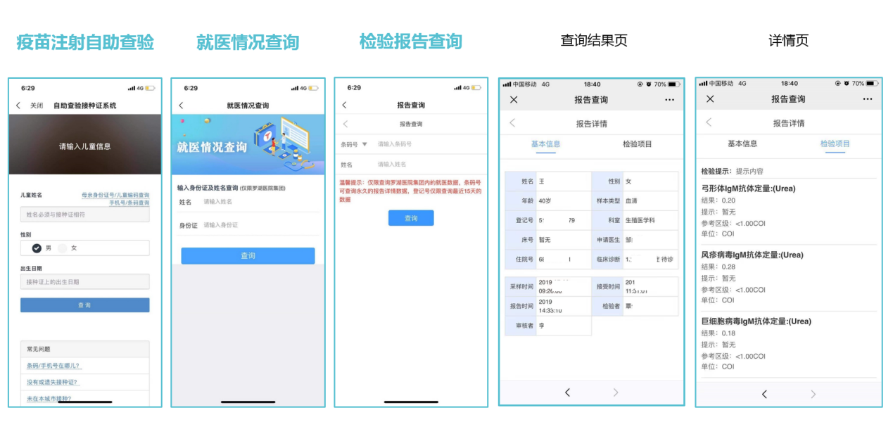 (二)医疗方面,“i罗湖”让健康信息获取更及时。一方面,提供疾控服务点、社康中心等便民查询信息。另一方面,通过与罗湖医院集团系统、市疾控系统打通,实现体检报告、就医历史在线查询和疫苗注射记录查验打印。