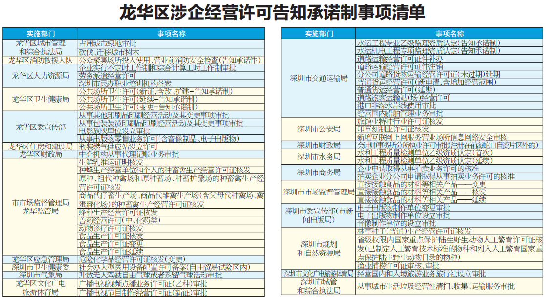 为加快构建新发展格局,龙华区进一步完善支持政策直达快享机制,扎实推进告知承诺制改革,在全市率先发布64项“涉企经营许可告知承诺”事项清单,包含市级可办理事项31项,区级可办理事项33项,并打造覆盖网上办和指尖办的告知承诺事项服务专区,创新形成“承诺办理+信用监管”治理模式,从制度层面解决企业办证多、办事难等问题,促进民营经济高质量发展。