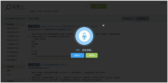 公众“发声”,政府网站“听得懂”。网站提供语音导航和语音搜索功能,点击网站的语音导航按钮后,说出栏目名字或“找一下教育局”“我要投诉”等常用指令,即可导航到网站相应栏目。如果没有响应栏目,则调用搜索提供网站相关信息给用户。