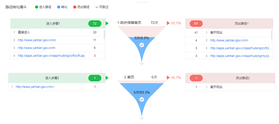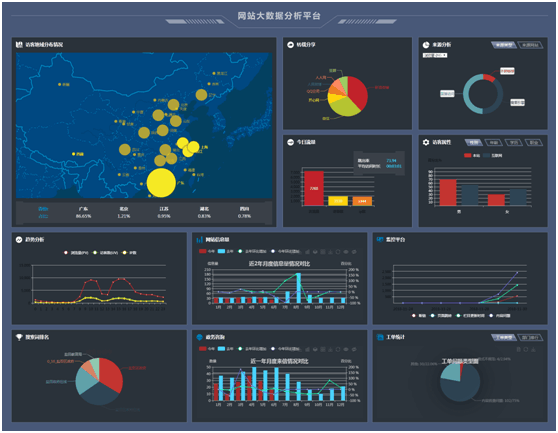 网站主页 的升级主要基于政府网站数据分析与决策系统,此系统基于百度统计开放平台开发,在百度统计的基础上实现“自定义变量统计”和“事件跟踪”,监控到网站内按钮、链接的点击情况,通过预先定义每个链接的属性(位置、操作、物料),了解访客点击行为,分析用户兴趣,并按照自定义维度、结合政府业务特点,进行多维、细粒度、垂直分析,从而科学得出公众的信息和服务需求和使用习惯。