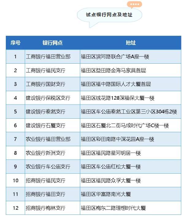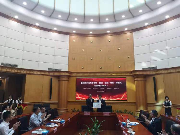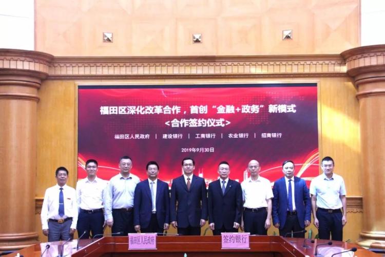 9月30日,福田区人民政府与工商银行、建设银行、农业银行和招商银行举行“政银合作签约仪式”。10月1日起,福田区“金融+政务”一站式直通车入驻银行网点,市民可在12个银行网点办理100项政务服务事项。