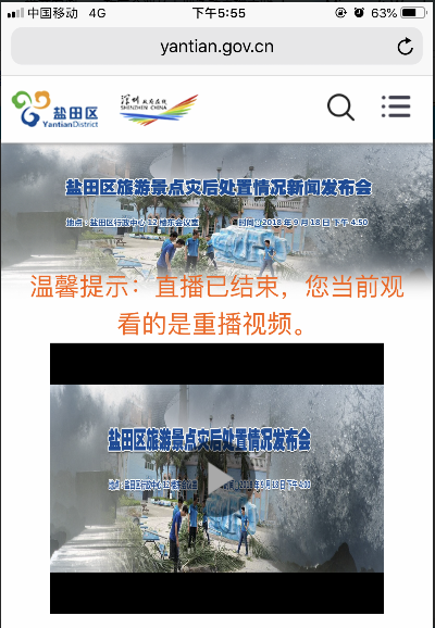 盐田区直播平台还开展了“在盐田”市民服务平台发布会、盐田区旅游景点灾后处置情况探花发布 会等视频直播活动,第一时间响应群众需求,实时与群众互动,大大提升了政府的决策透明度,提高政府公众认知度以及社会影响力。