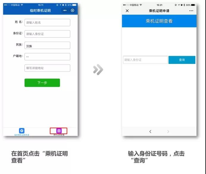 电子临时乘机证明申请步骤