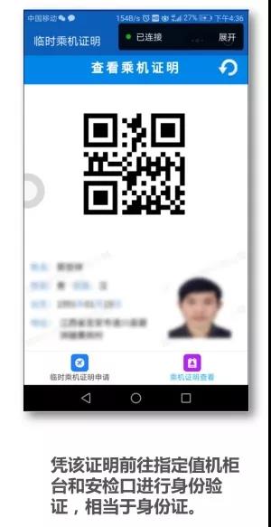 据悉,该电子临时乘机证明是全国民航公安大数据战训中心于2018年4月12日成立后,研发的第一个创新民生产品。该产品因具有统一的公安后台服务,全国各地机场仅需安装扫码核验设备,便可实现此项功能。