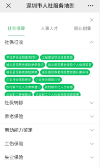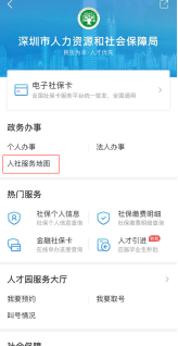登录“i深圳”-部门服务-市人力资源保障局,在“政务办事”板块下选择“人社服务地图”。