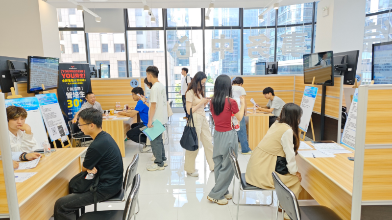 本次活动以促进高校毕业生、大湾区青年就业为重点,同步辐射各类求职群体,采用“线下精准对接+网络云端招聘会+直播带岗”融合服务模式,同时现场为来深求职的高校毕业生免费赠送近20张深圳交通出行卡,彰显城市温度。本次招聘活动共18家企业参与,包括市人民调解协会、深圳供电局、奥兰若科技等优质重点单位,岗位丰富,涵盖新媒体、软件与信息服务、海外市场拓展等福田区重点现代产业集群相关领域岗位244个。活动现场吸引超350人次入场求职,线上直播吸引1.1万人次,共收到简历296份,初步达成就业意向67人次,有效实现了人才资源与产业需求的高效匹配,为福田区现代产业体系建设提供有力的人才支撑。