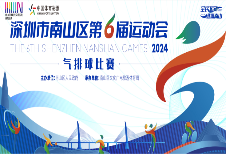 南山区第六届运动会作为一项综合性体育赛事,以“全民运动、健康南山”为主题,由南山区政府主办、南山区文化广电旅游体育局承办。本届赛事群众组项目共设20个大项,分别为球类赛事足球、篮球、羽毛球、乒乓球、气排球、门球、网球七项,棋牌类赛事:中国象棋、国际象棋、围棋、桥牌四项,编排展示类:广场舞、体育舞蹈、柔力球、健身秧歌、健身气功、太极拳六项,竞速类:自行车、游泳、赛艇三项,项目覆盖老中青多个年龄阶段人群,运动会各项目比赛将于4月至11月期间展开,预计共有20000余名运动员参与。