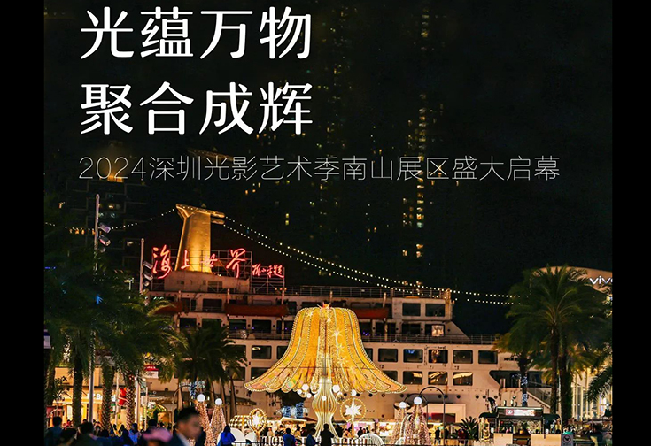 12月18日,2024深圳光影艺术季南山展区盛大启幕,南山展区以“光蕴万物·聚合成辉”为主题,在深圳人才公园等四大城市公共空间以及海上世界等九大商圈