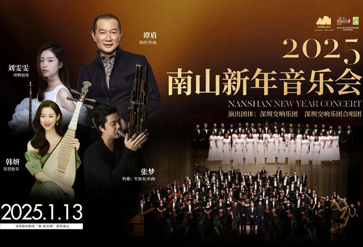 2025年南山新年音乐会,将联袂谭盾、唢呐演奏家刘雯雯、琵琶演奏家韩妍、笙演奏家/作曲家张梦、深圳交响乐团及其合唱团,献上精彩的《笙歌燕舞·蛇年庆典》、琵琶协奏曲《三琵》《百鸟朝凤》,以及谭盾“贝九·九歌”的中国首演,奏响新年序曲!