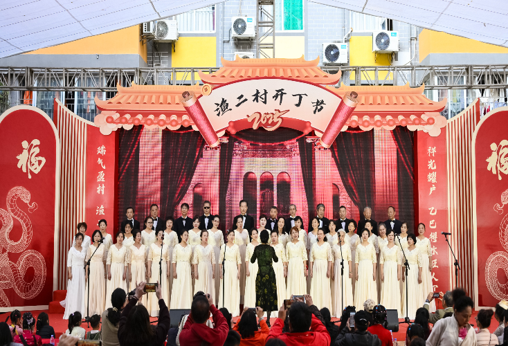 南山区2月10日,蛇口街道渔二村开丁节顺利举行。启幕仪式上,“开丁节”理事会成员现场进行点灯,祭拜天地、祖先,并为渔二村2024年的新生儿派发丁席、灯笼、丁酒、利是,送上真挚的祝福。随后,一场热闹的舞狮表演拉了欢庆的序幕,丰富多彩的文艺节目一一登台亮相,精彩纷呈。村民敞开大门迎客,热情地为客人奉上象征丁财两旺的“开丁茶”,共同分享喜悦与祝福。