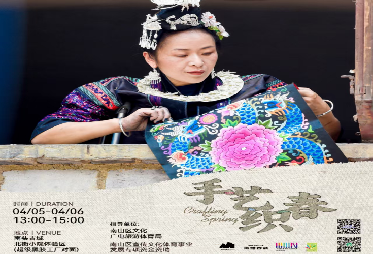4月5日,南头古城社区生活季首场活动——刺绣工作坊邀请苗绣手艺人张艳梅老师进行苗绣工艺分享,邀请对设计、艺术有兴趣及能力的专业人士与爱好者进行体验和学习。