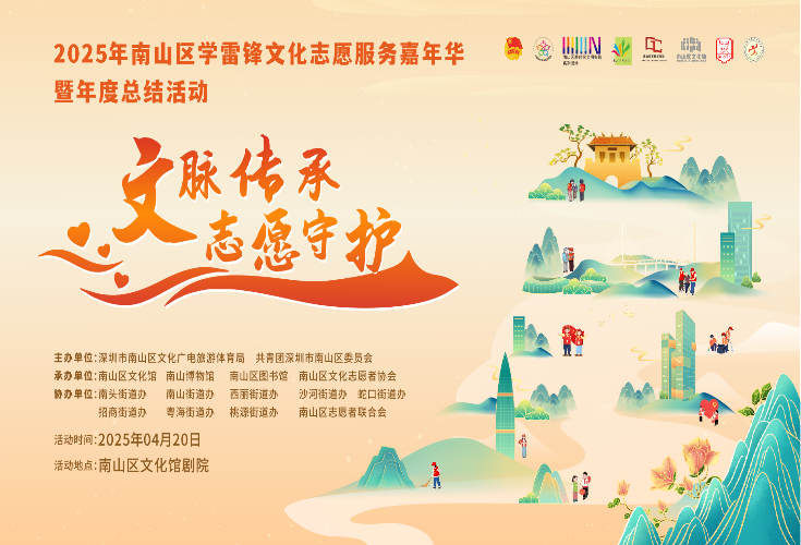 4月20日,“文脉传承·志愿守护”2025年南山区学雷锋文化志愿服务嘉年华暨年度总结活动在深圳市南山区文化馆剧场隆重举行。此次活动由南山区文化广电旅游体育局、共青团南山区委员会主办,南山区文化馆、南山博物馆、南山区图书馆、南山区文化志愿者协会承办。