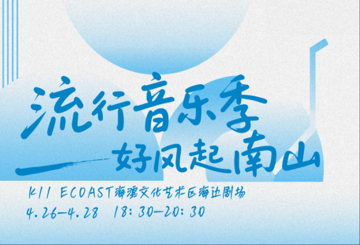 “流行音乐季·好风起南山”将于4月26日至28日期间,在深圳K11 Ecoast海滨文化艺术区海边剧场展开,该活动由南山区文化广电旅游体育局指导,深圳夏日星河文化传媒有限公司承办。